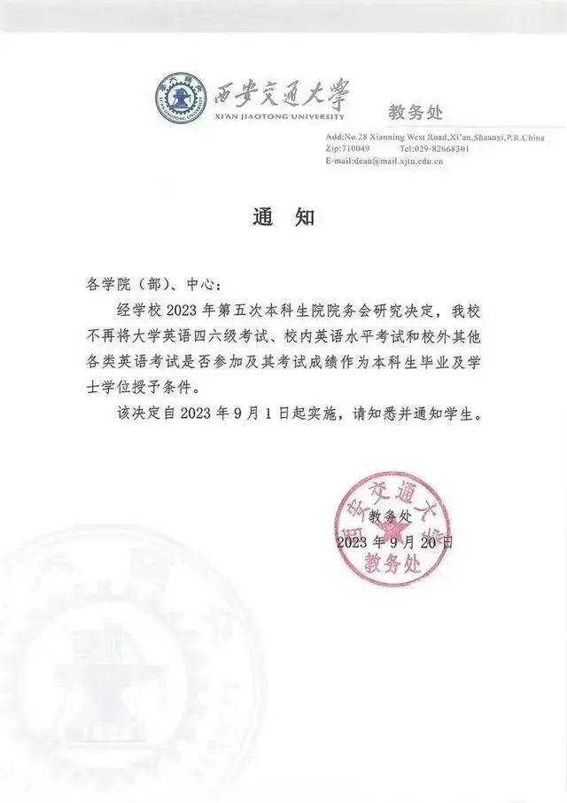 有报道显示,有的地方已明确规定,在小学取消了英语考试;一些城市,甚至个别大城市,已将原来的英语指路标识,改用了汉语拼音。前不久,西安交通大学还下发书面通知,宣布英语成绩不再与学生毕业和学位挂钩。