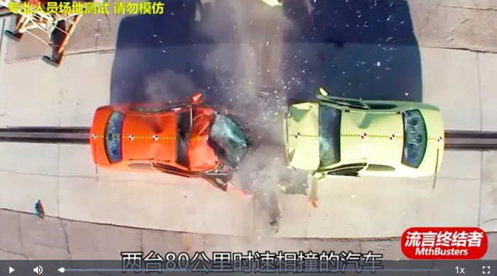 当然,这是一个很常见的幻觉。美国著名科普节目《流言终结者》的主持人杰米海纳曼也在节目中犯过这个错误,面对大家的指出,流言终结者干脆又做了一期节目来证明:秉承着流言终结者的一贯作风,他们真的找来了真正的汽车来做碰撞实验。最终结果证明海纳曼(自然也包括雷军)都是错的。